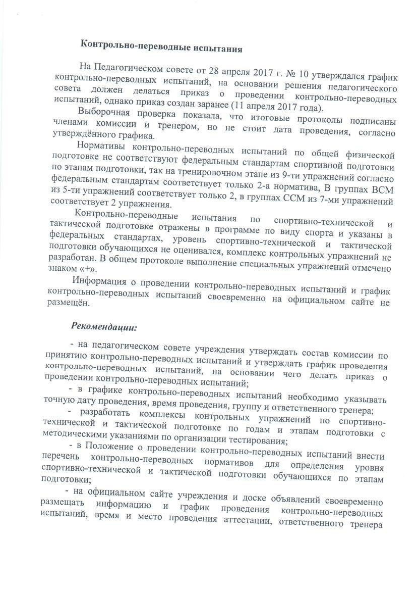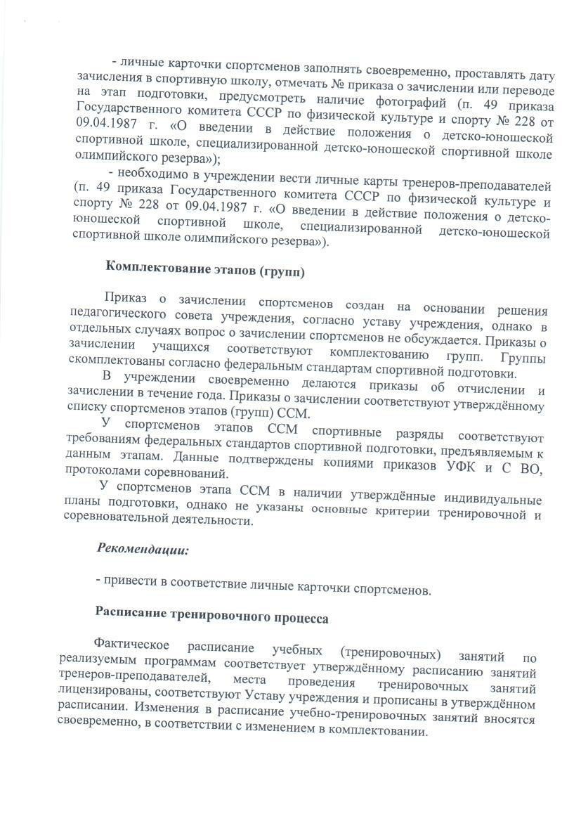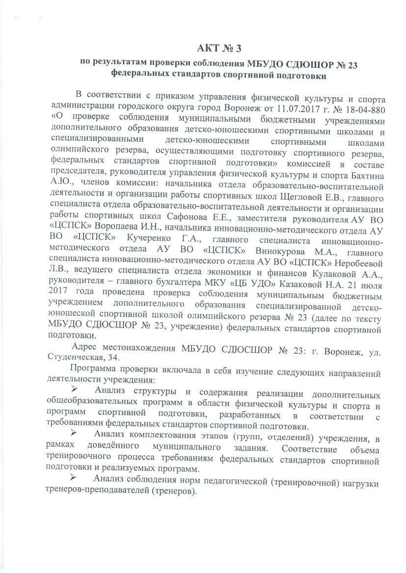 Акт по результатом проверки соблюдения федеральных стандартов спортивной подготовки