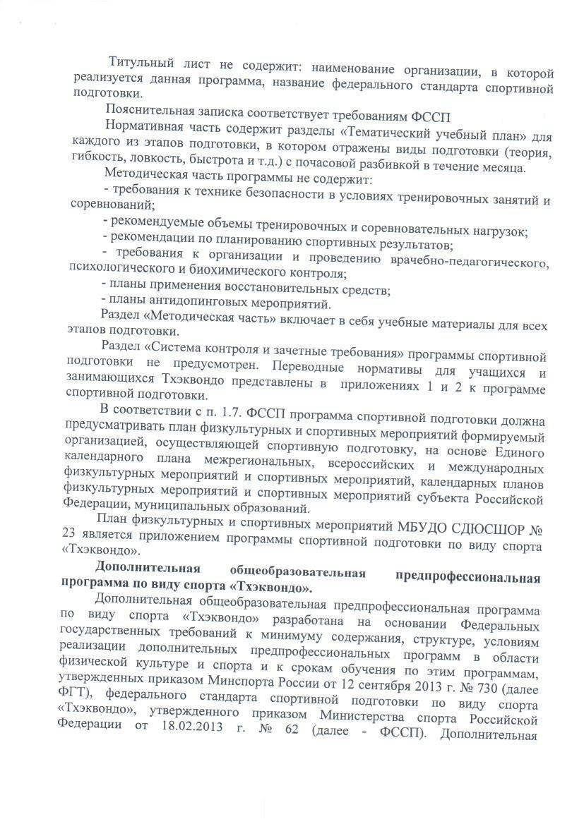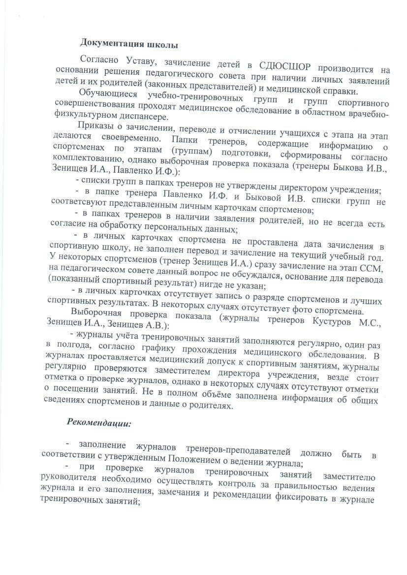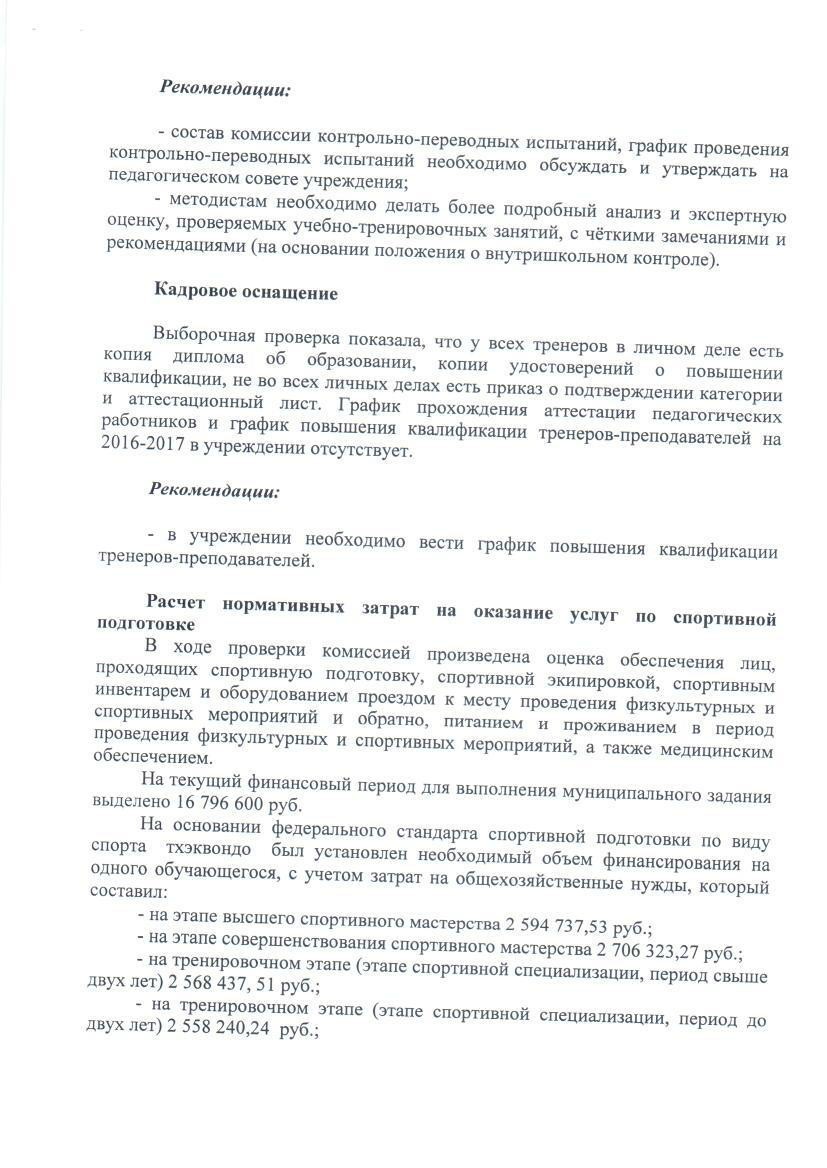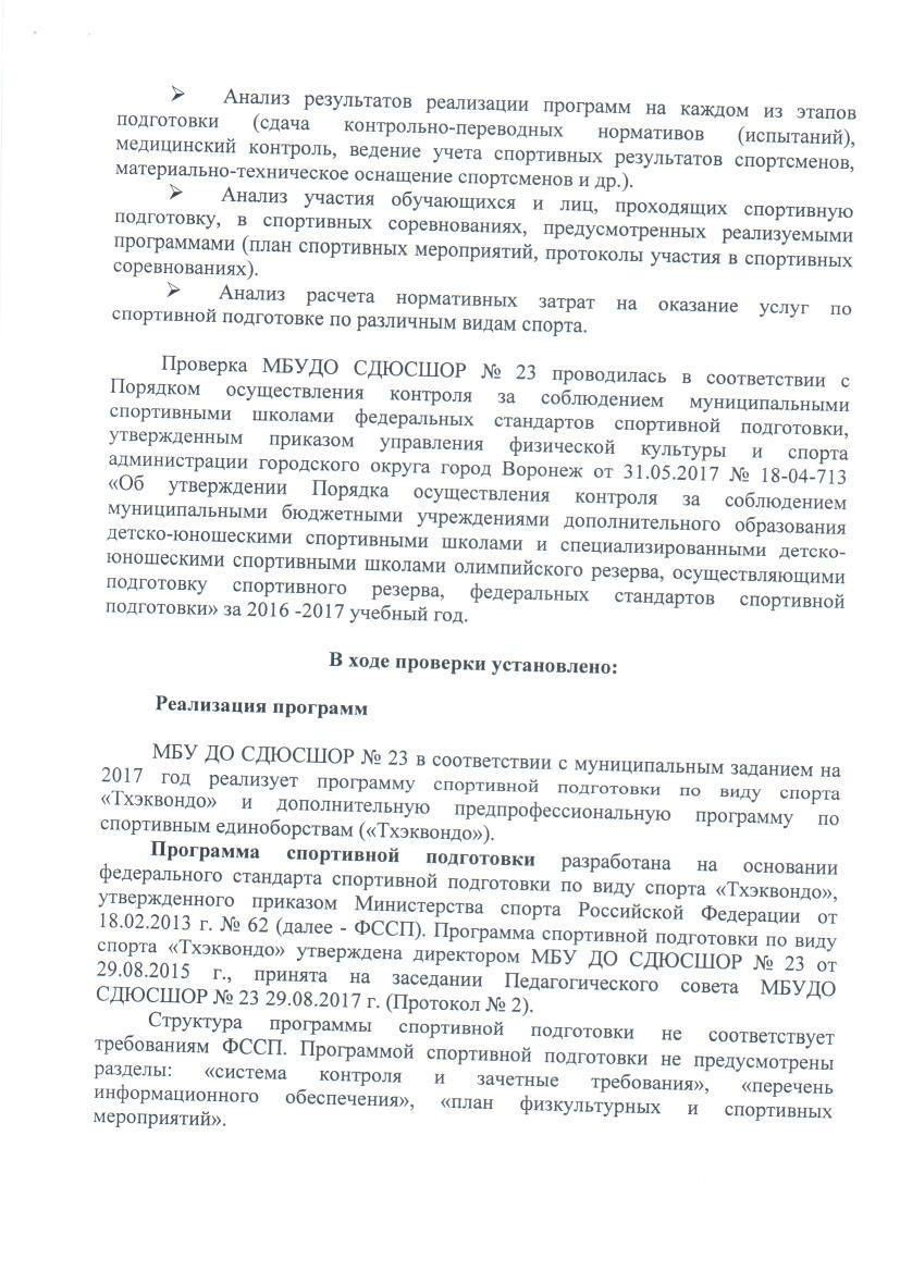 Акт по результатом проверки соблюдения федеральных стандартов спортивной подготовки