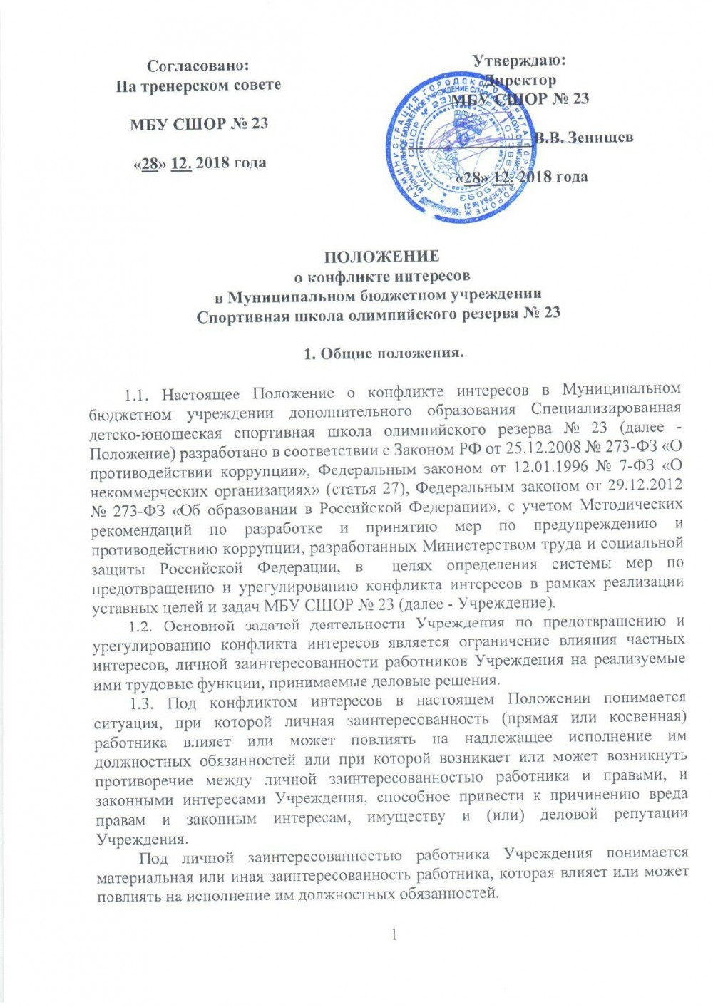 ПОЛОЖЕНИЕ О КОНФЛИКТЕ ИНТЕРЕСОВ 2018