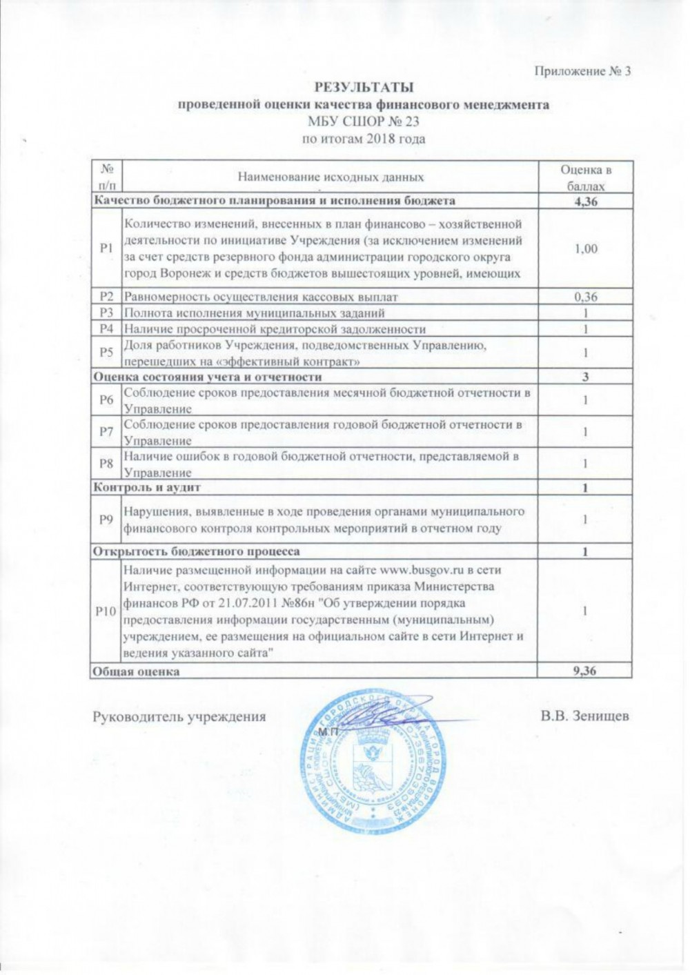 Результаты проведенной оценки качества финансового менеджмента за 2018 год