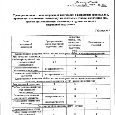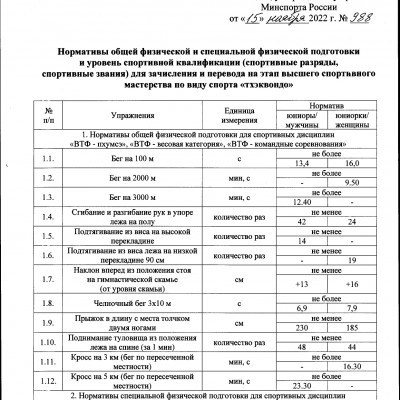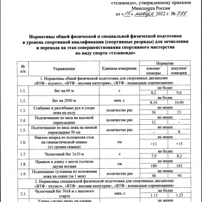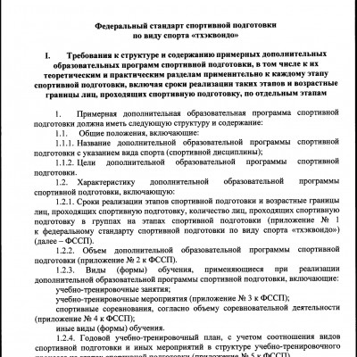 Федеральные стандарты спортивной подготовки по виду спорта “тхэквондо”